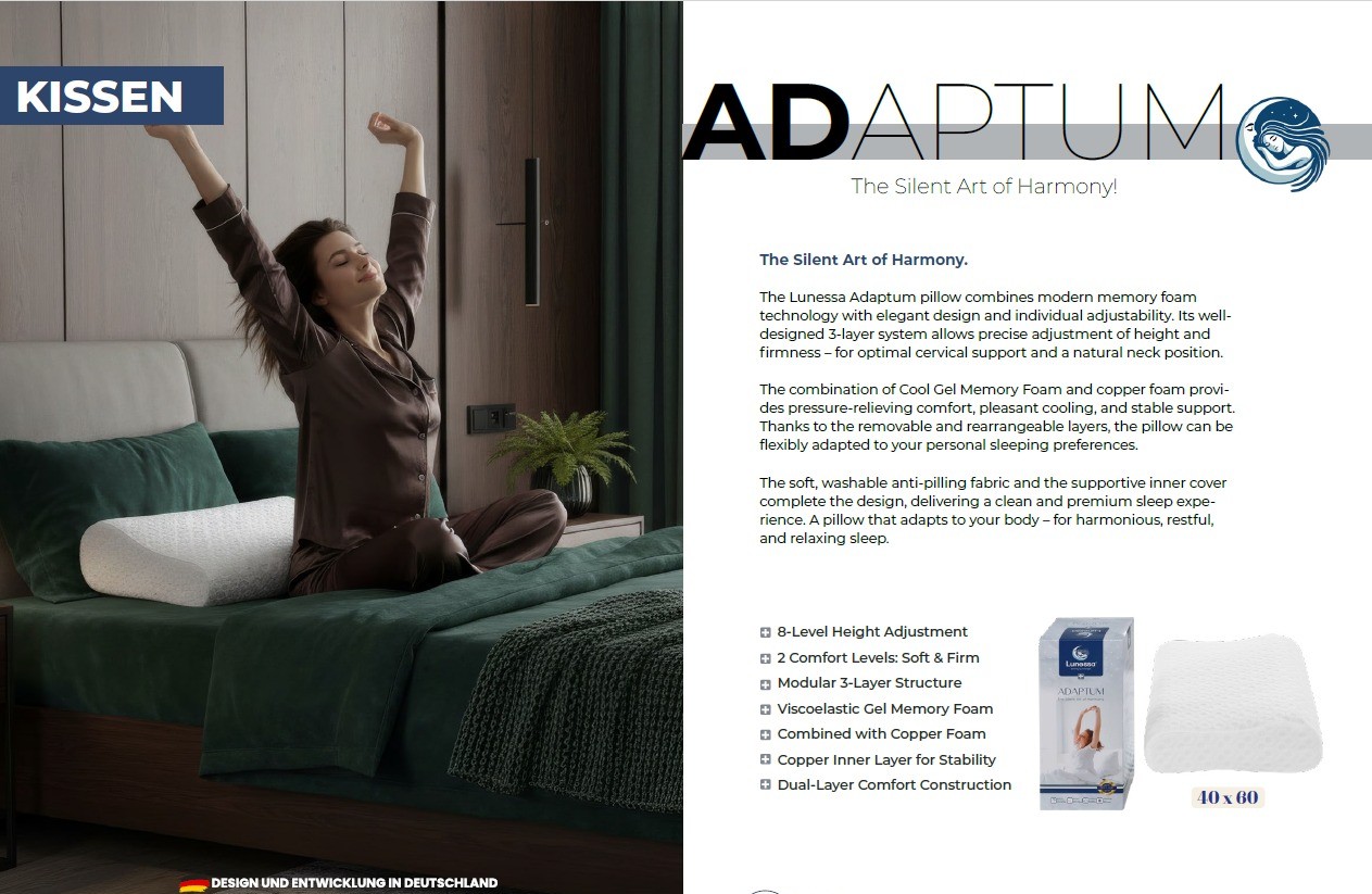 Lunessa Adaptum tyyny yhdistää modernin muistivaahtoteknologian ja selkeälinjaisen, elegantin muotoilun yksilölliseen